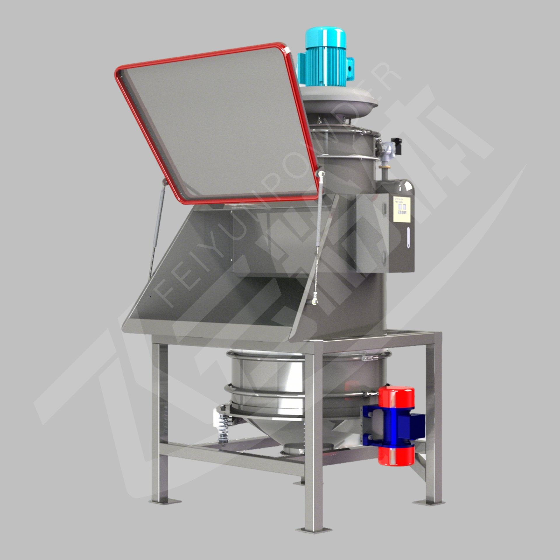 无尘投料站由投料平台、卸料仓、除尘系统、振动筛等部件组成。